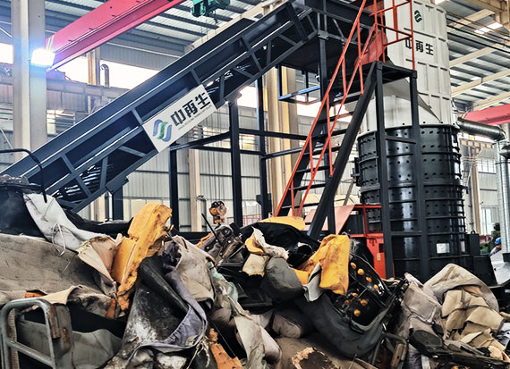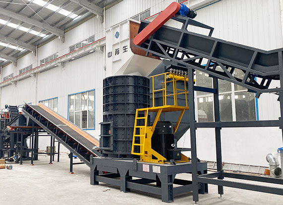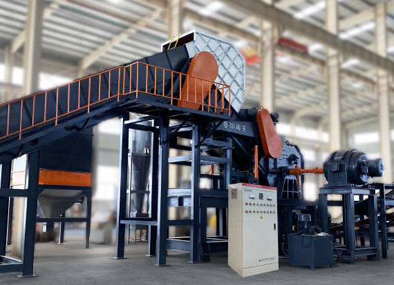 該機外觀新穎、運行穩定、體積小、維修方便、結構簡單、生產能力大、在破碎中可將廢鋼表面的鐵銹、油漆等表面污物分離、再在磁力分選裝置作用下將廢鋼鐵中混雜的有色金屬、塑料和橡膠等非金屬廢物單獨歸堆,破碎機工作時,在電動機的帶動下,轉子高速旋轉,物料進入破碎腔與轉子上的錘頭撞擊剪切破碎,然后進入工作腔粉碎揉團,最后從出料口排出。