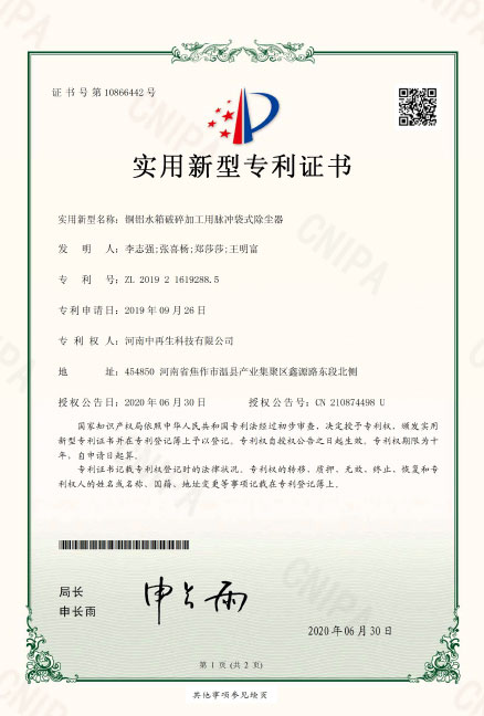 • 2019216192885_銅鋁水箱破碎加工用脈沖袋式除塵器